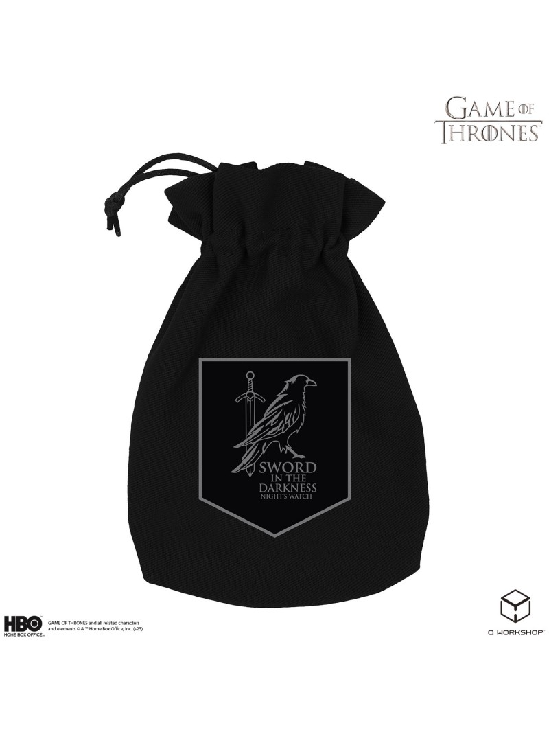 Uchovejte své kostky jako pravý strážce Zdi s váčkem Game of Thrones – Night’s Watch. Černý design se znakem havrana a mottem Sword in the Darkness dokonale vystihuje odhodlání Noční hlídky.