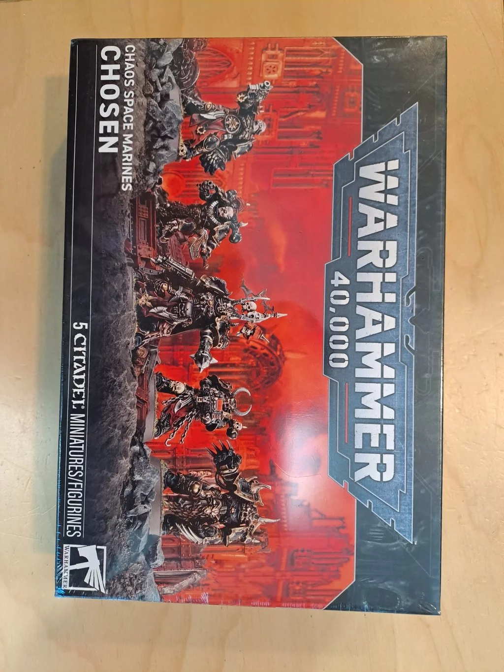 Sada obsahuje 102 dílků, z nichž lze sestavit pětičlenný oddíl Chosen, zocelených Chaos Space Marine bojovníků, kteří vedou útok na nepřátelské pozice. Tento set pak nabízí vysokou variabilitu při skládání modelů, najdete v něm 5 unikátních batohů, 10 ramenních chráničů, 13 hlav (varianta s helmou i bez) a dalších doplňků, které vám umožní sestavit Chosen Championa.