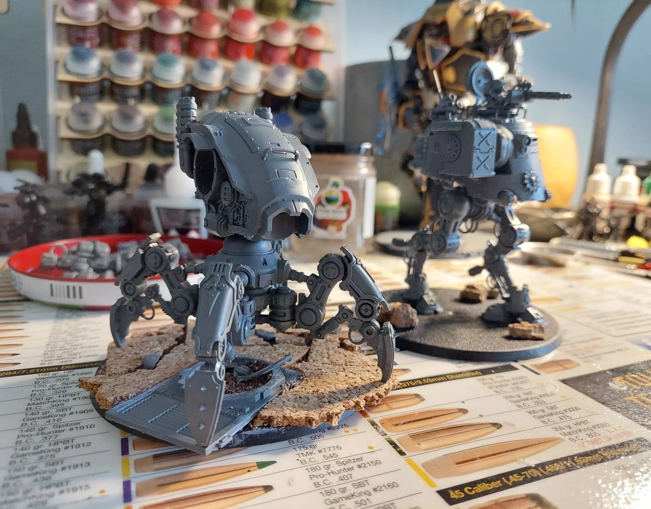 Jeden z modelů Armigerů jsem kitbashnul s modelem Mechanicus Dunecrawler. Takto sestavené modely budou v mé armádě Chaos rytířů zastupovat Vashtorra/Iron Warriors a Dark Mechanicum.