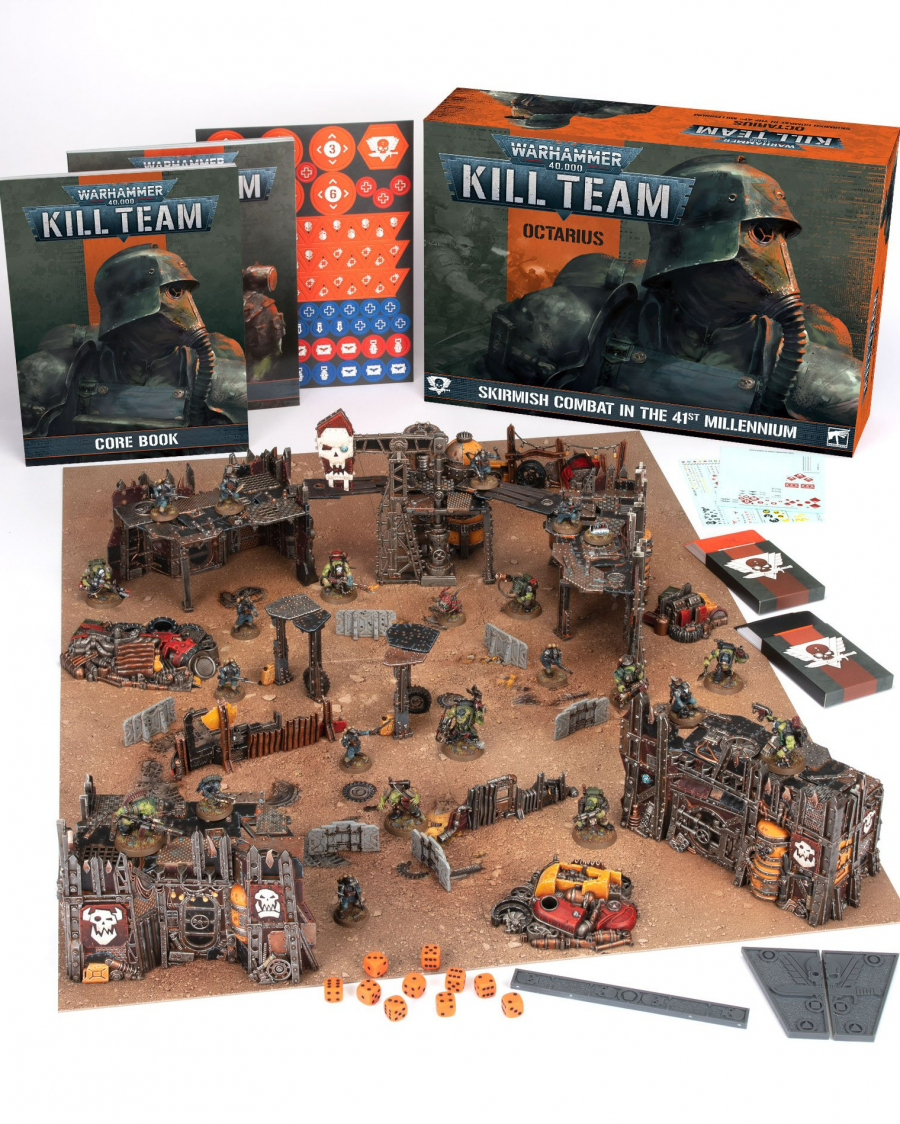 17x terény: Vytvořte zchátralé orcké město s ruinami, plošinami a rozházeným odpadkem. Terén představuje druhy prostředí, která se běžně vyskytují v celém sektoru Octarius, a přináší nové výzvy i těm nejzkušenějším velitelům týmu Kill Team.
