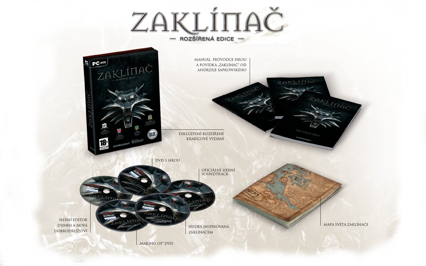 V Rozšířené Edici naleznete: DVD s hrou Zaklínač (samozřejmě s nejnovějším patchem 1.4) a volitelný jazyk (10 světových jazyků včetně češtiny), DVD s Making of videem (aktualizovaný a rozšířený filmový dokument, který byl původně ve sběratelské verzi), bonusové DVD, které obsahuje editor Djinni a dvě nová dobrodružství Cena neutrality a Vedlejší účinky (první včetně dříve nedostupného českého dabingu, druhé jmenované ve světové premiéře), CD se soundtrackem, CD s hudbou inspirovanou Zaklínačem, manuál, oficiální Průvodce hrou,povídka Zaklínač od Andrzeje Sapkowského,-mapa světa Zaklínače. Zde náhled balení)Zaklínač v sobě snoubí divácky a vizuálně úchvatnou akci s detailně propracovaným a spletitým příběhem. Děj je zasazen do světa, jejž vytvořil oblíbený polský autor Andrzej Sapkowski a který se v některých aspektech podobá ostatním fantasy světům - ve spoustě prvků se od nich však diametrálně odlišuje. Hráč se vžije do kůže zaklínače, bojovníka, který se již od dětství cvičil v bojových uměních, prošel mnohými zkouškami a mutacemi a jenž si na živobytí vydělává zabíjením nestvůr. Je členem prastarého bratrstva, které vzniklo před dávnými časy, aby chránilo lid před vlkodlaky, nemrtvými a dalšími zrůdami. Naše hra by se dala popsat jako akčně orientované, vizuálně propracované a snadno hratelné RPG pro jednoho hráče, které má zároveň silný a neobvyklý příběh. Hra je kompletně v češtině.